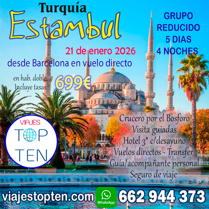 Dos de mayo 223 – Local B20 – 08013 – Barcelona+34 933 536 263 Whatsapp 662 944 373 viajestopten@gmail.com