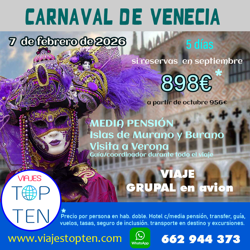 IMPORTANTE: Los precios de los folletos corresponden a salidas en bus privado desde Provincia de Castellón.