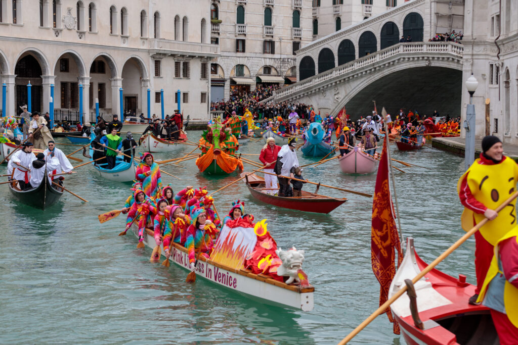 Tras desayunar muy temprano nos  dirigiremos a tomar posiciones en la isla a la espera del «Il corteo acqueo del Carnevale» , algo así como «El desfile de carnaval sobre el agua». Una procesión excepcional de barcas de remos enmascaradas, conducidas por remeros disfrazados, en la cual una vistosa coreografía de colores envolverá su recorrido, para dar un «inicio» simbólico a la Celebraciones del Carnaval de Venecia 2025.