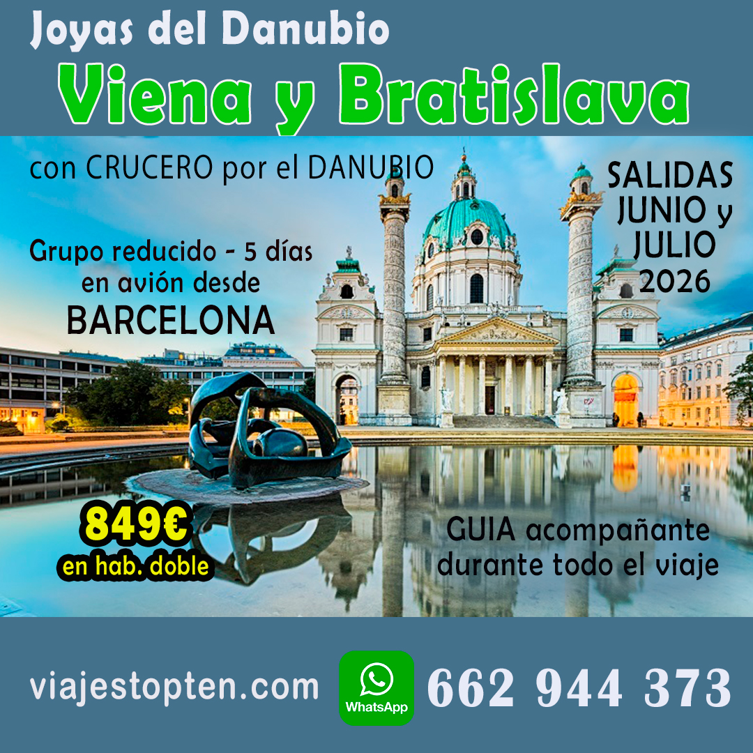 Precio: 849€ en hab. doble en hotel 3* en ciudad de Viena. Suplemento habitación individual 223€
